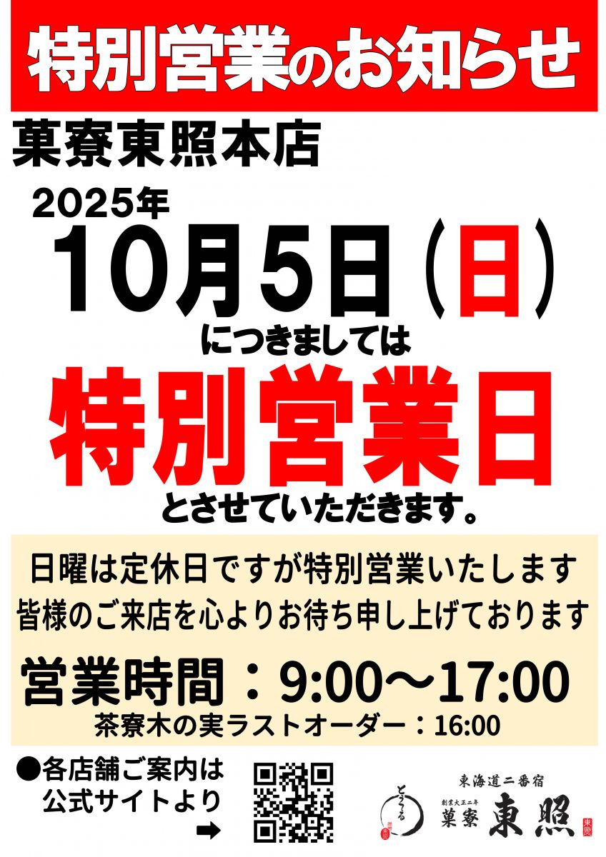 ★2025年10月5日(日)は特別営業いたします(営業時間は祝日と同様です)。